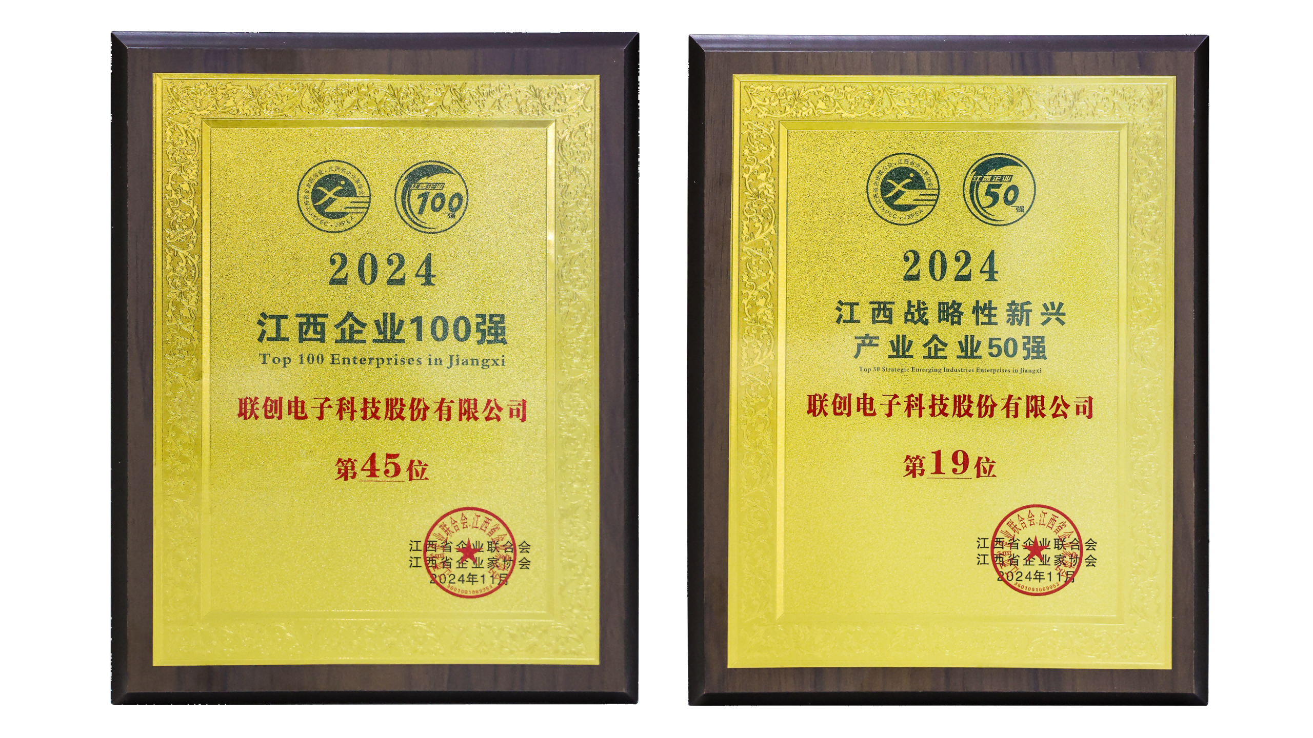 【概要描述】11月20日,江西省企业联合会、江西省企业家协会发布“2024江西企业100强”“2024江西战略性新兴产业企业50强”榜单。乐竞网页版登录入口凭借稳健的经营业绩和较强的综合实力,荣登2024江西企业100强第45位、战略性新兴产业企业50强第19位。这一成绩的取得,充分反映了联创电子在电子信息、战略性新兴产业领域的深厚积淀和强劲发展势头。